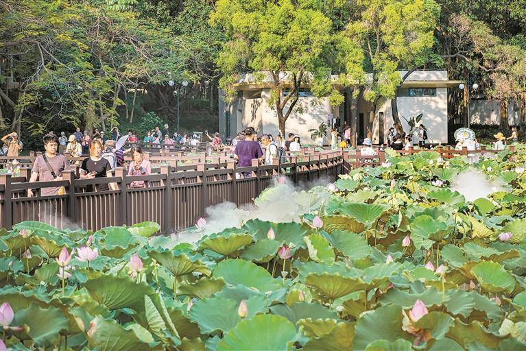 荷塘栈道吸引了众多游客。 深圳晚报记者 宁杰文 摄