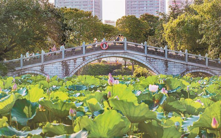石桥与荷塘相映成趣。 深圳晚报记者 宁杰文 摄